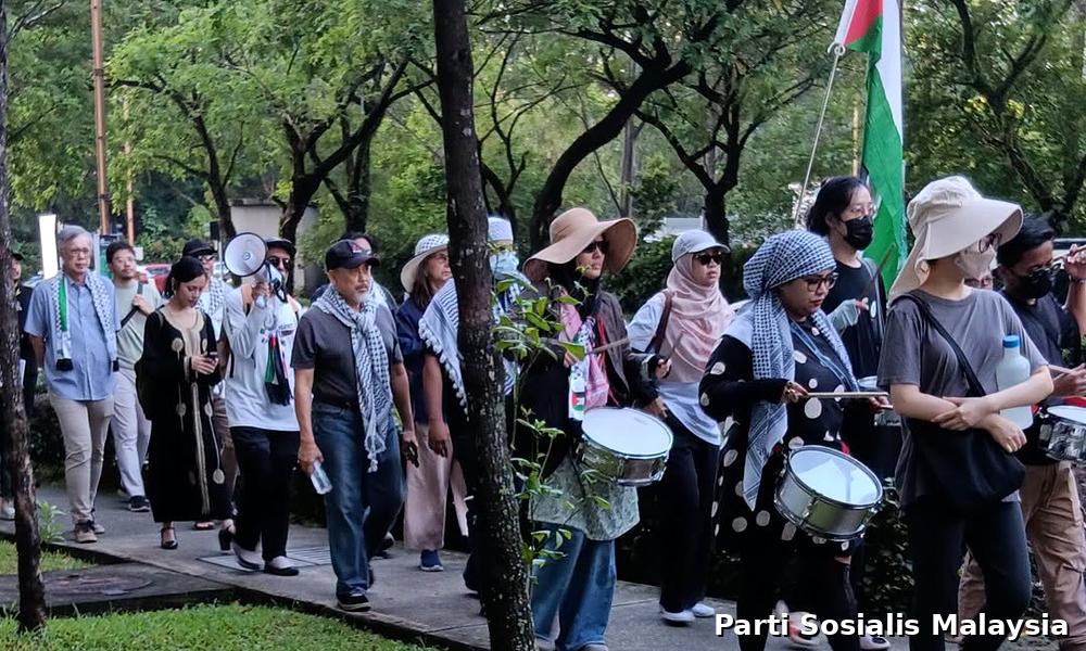 Sekumpulan aktivis pro-Palestin hari ini membantah pameran Perkhidmatan Pertahanan Asia (DSA) dan Keselamatan Negara (NatSec) Asia 2026 di hadapan Pusat Pameran dan Perdagangan Antarabangsa Malaysia (Mitec) di Kuala Lumpur.