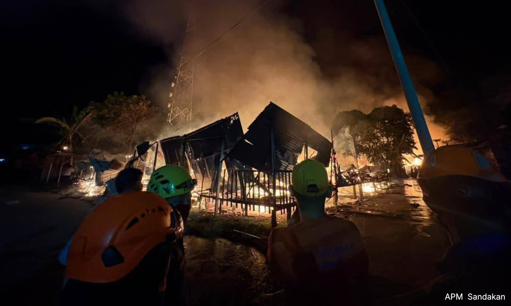 Ketua Balai Bomba dan Penyelamat Sandakan Jimmy Lagung berkata pihaknya menerima panggilan kecemasan berhubung kebakaran di kampung itu pada 3.16 pagi sebelum 21 anggota bomba bergegas ke lokasi kejadian.