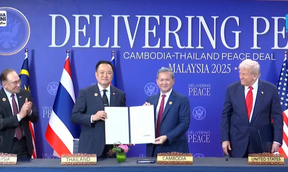 Semasa majlis menandatangani perjanjian damai Thailand-Kemboja