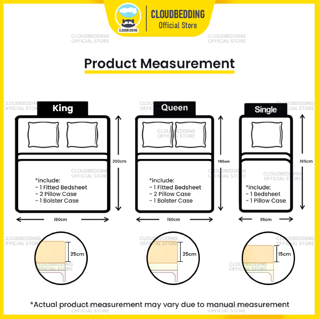 B.S.B #1 Premium Quality Bedsheet 4in1 King Queen/2in1 Single Cotton Fitted...