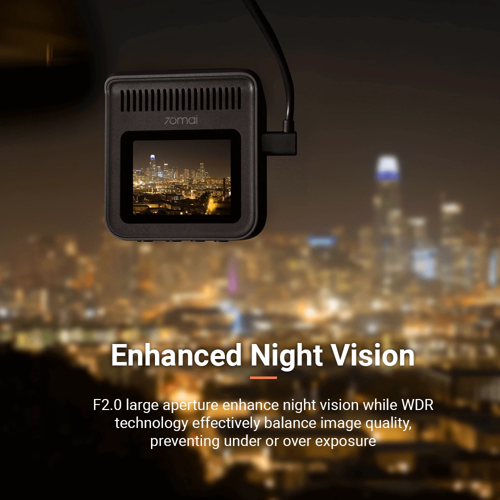 Rekod QHD 1440P, tangkap semua detail penting. Sudut FOV 145°, boleh cover tiga lorong jalan. Layar 2 inci IPS, tonton rakaman secara real-time.