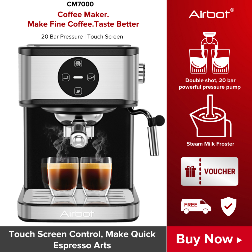 Mesin kopi Airbot ni memang terbaik! Rasa kopi pekat, sedap, dan mantap macam kedai kopi. Boleh buat banyak cawan sekali gus.
