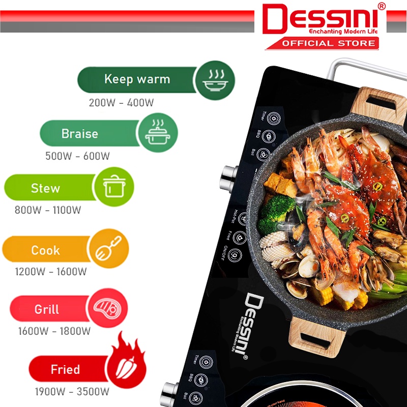 Dessini 3500W + 3500W Electric Infrared Cooker memang terbaik! Dengan panas cepat, tak perlu tunggu lama nak masak. Makanan tak hangus sebab takde api terbuka, senang nak bersihkan.