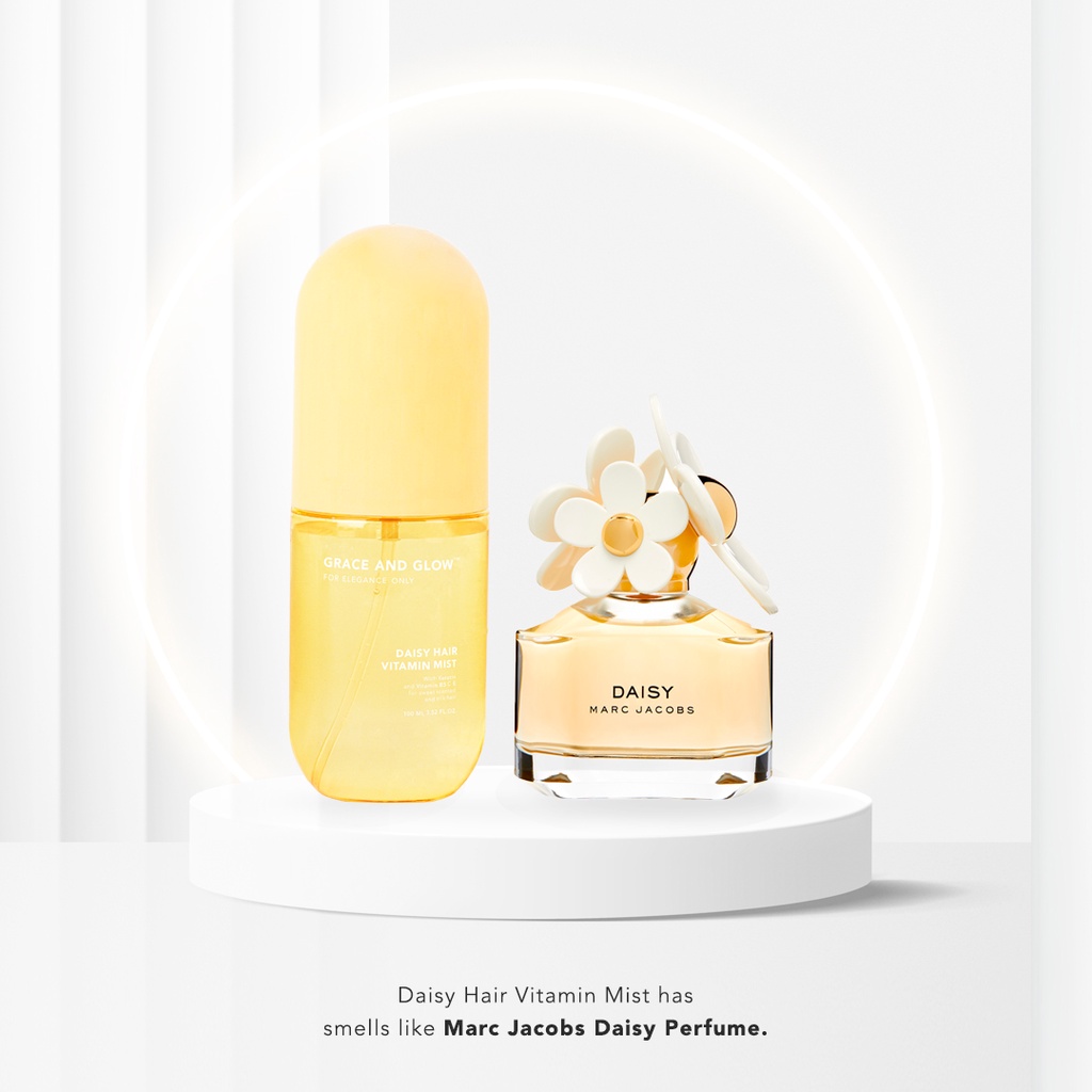 Mist Vitamin Rambut Grace & Glow Daisy wangi manis dan rambut sutra Keratin + Vitamin B5 C E. Lepas spray, rambut senang diurus, nampak lebih voluminous, berkilau semulajadi, dan rambut tak gugur atau pecah. Patut cuba!
