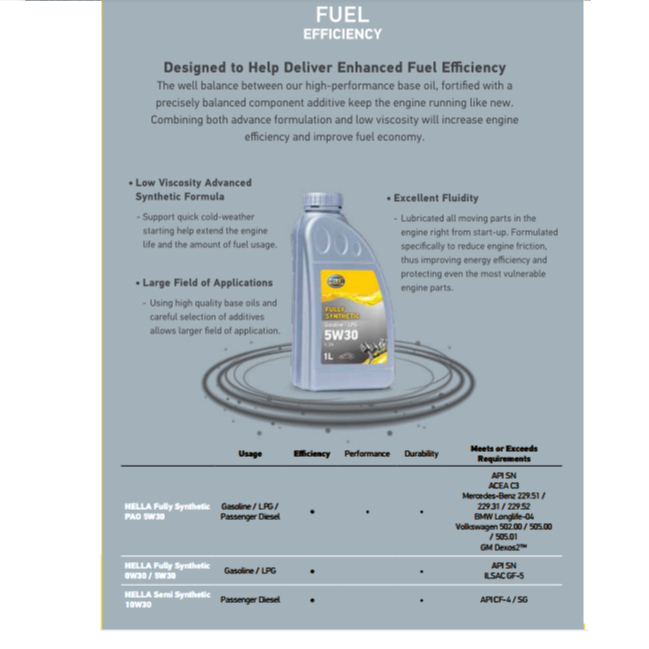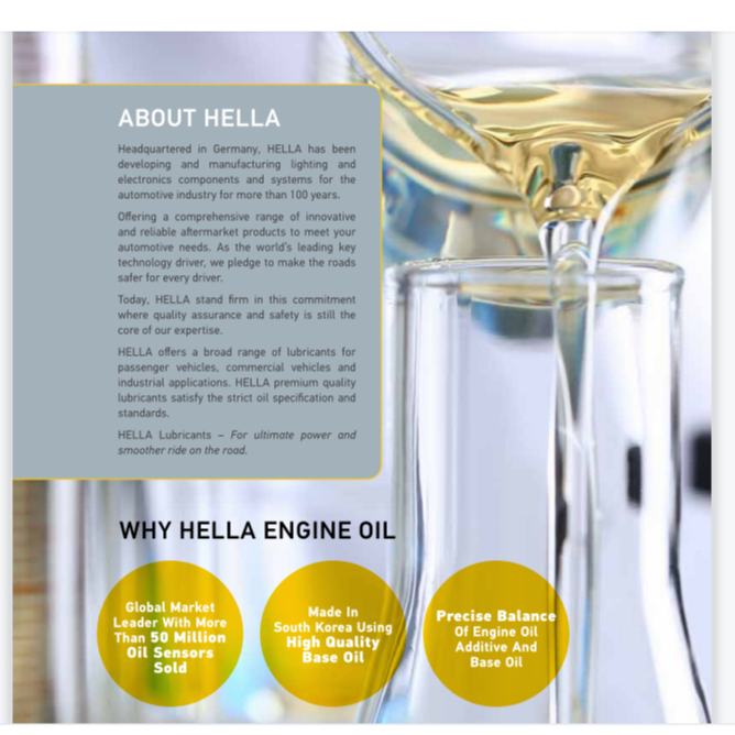 Minyak hitam Hella memang terbaik! Packaging cantik, penghantaran pantas, memang puas hati! Motor jadi lancar, minyak tak cepat habis.
