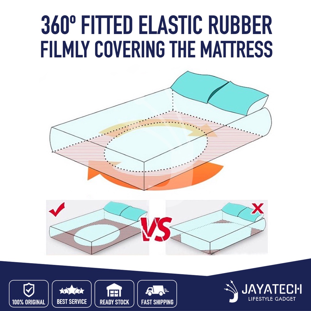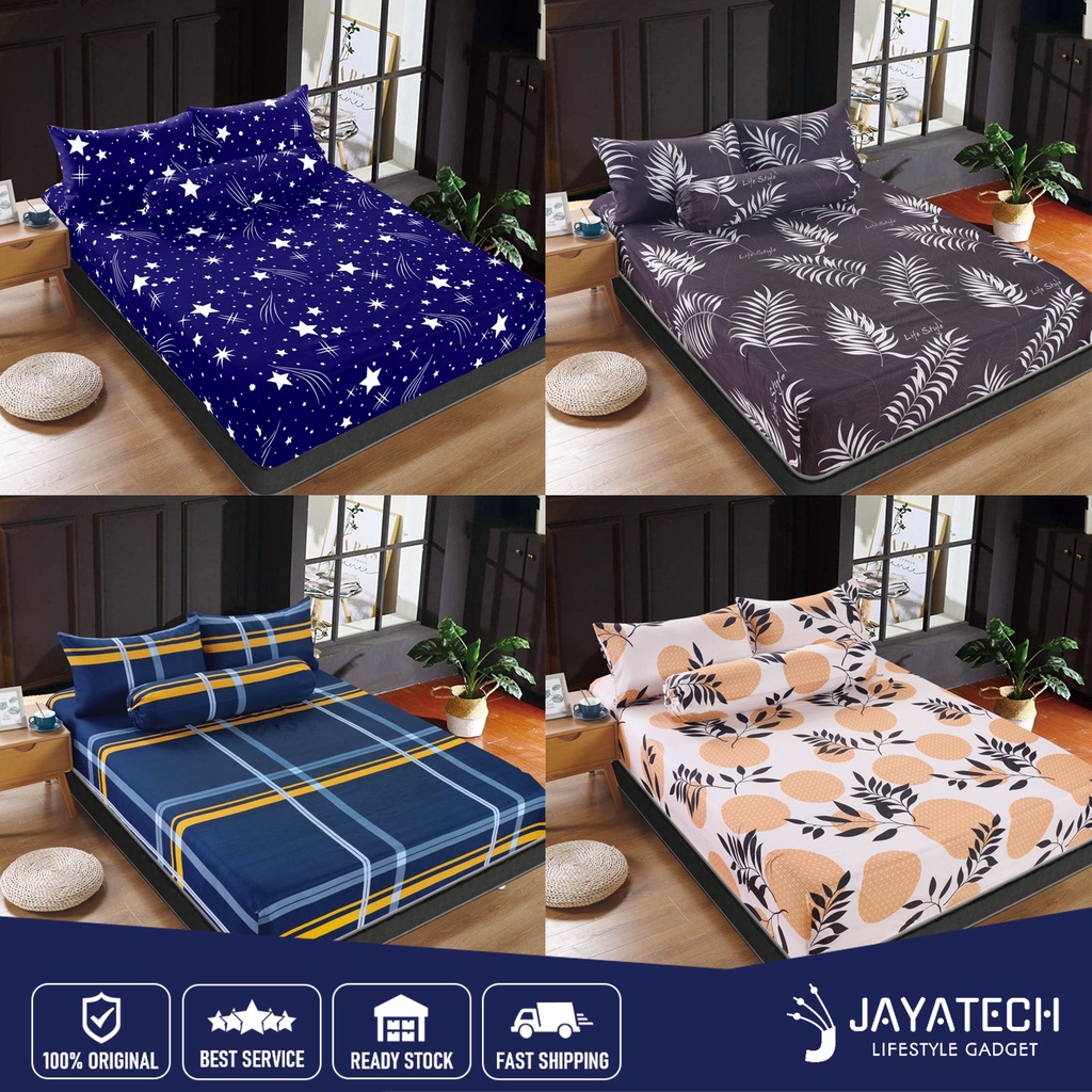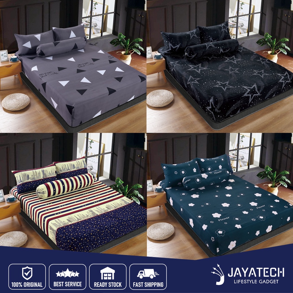 Selamat datang ke JAYATECH !!! CADAR BERGETAH KELILING yang memang superb !!! 4-IN-1 Queen & 2-IN-1 Single !!! Pilihan corak yang banyak gila !!! Cerita pasal sarung katil memang tak boleh blah. Kain premium yang selesa, tak kedut dan tak melekat dengan kotoran. Muat katil apa pun, pasti terletak cantik dan nampak berkelas.