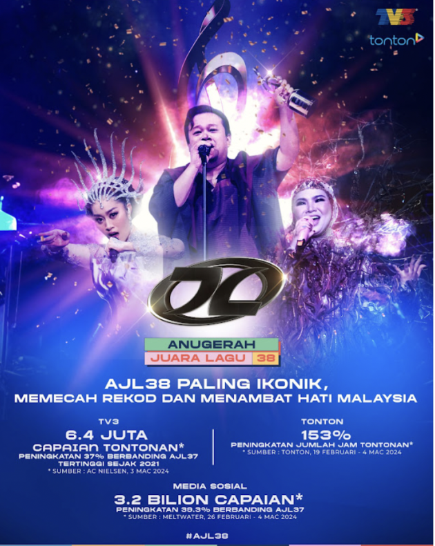 Anugerah berprestij ini telah berjaya mencapai 6.4 juta tontonan TV yang menunjukkan peningkatan sebanyak 13% berbanding dengan AJL 37 sepanjang siaran langsungnya di TV3 pada 3 Mac 2024 bermula pukul 9.00 malam.