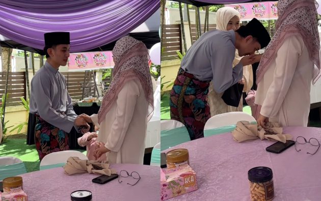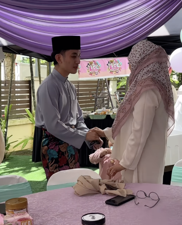 Pelakon Abby Abadi berkongsi sebuah video yang memaparkan anak dan menantunya datang beraya di rumah.