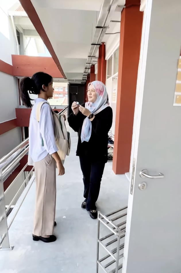 Menerusi perkongsian di Instagram, Bella kelihatan memeluk enam orang adiknya yang lain sebelum berangkat ke asrama.
