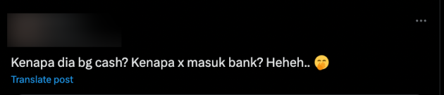 Kenapa dia bagi cash? Kenapa tak masuk dalam bank? Hehehe…