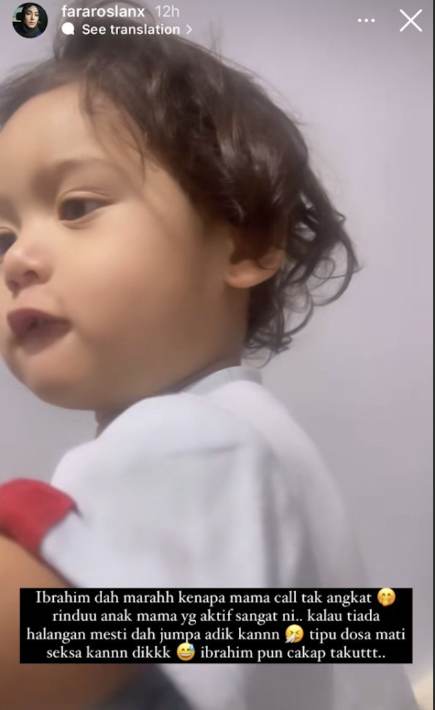 Menerusi hantaran tersebut, Fara memaklumkan dirinya begitu rindu akan anak bongsunya yang dikenali sebagai Ibrahim.