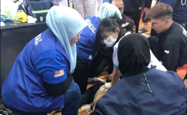 Difahamkan, adiknya rebah sebelum tidak sedarkan diri selepas terkena tendangan daripada pihak lawannya.