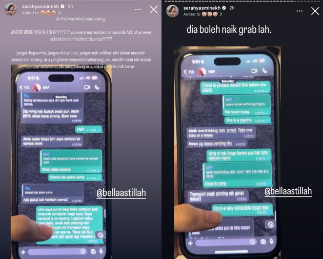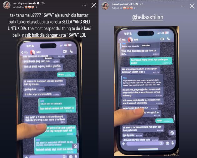 Menerusi perbualan WhatsApp yang dibongkarkan oleh Sarah Yasmine, Aliff memberitahu kepada Ruhainies bahawa dia ingin memulangkan semula kereta milik Bella kerana tidak mahu merumitkan lagi keadaan.