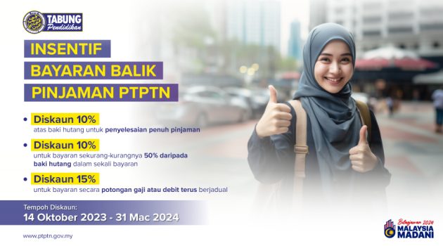 Tawaran insentif diskaun bayaran balik pinjaman PTPTN, sehingga 31 Mac 2024!
